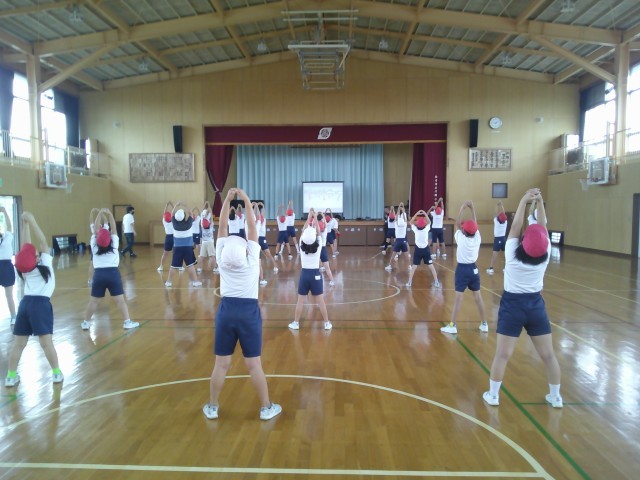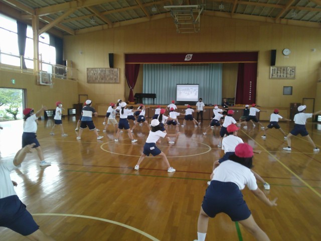 4・5・6年生では、六郷地区合同運動会にむけて、体育の授業で六郷ソーランを行いました。