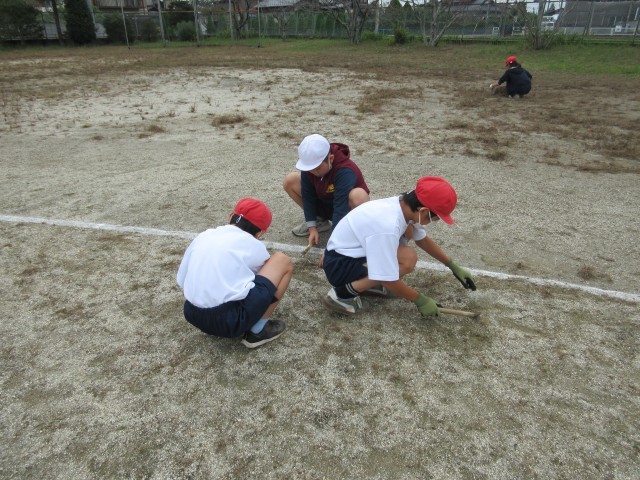 除草作業や石拾いなど、全児童で校庭をきれいにすることができました。