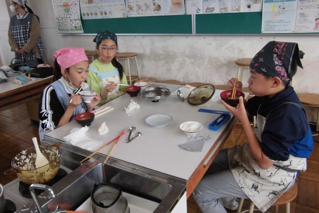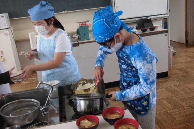 本日、5年生の家庭科の調理自習で、ご飯とみそ汁を作りました。