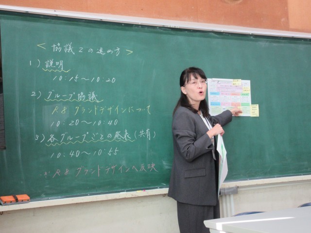協議1では、「地域と共に創り上げる学校行事」である、六郷地区合同大運動会について検討を行いました。地域と連携して行う種目内容や、地域の方の積極的な参加について検討を行いました。