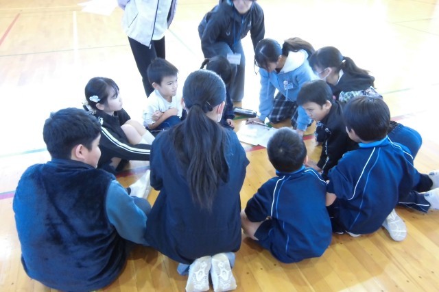 本日、昼休みの時間を使って、体育館にて登校班会議が行われました。