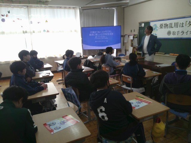 6年生の体育では、取手市ロータリークラブの方をお招きしまして薬物乱用防止教室が行われました。