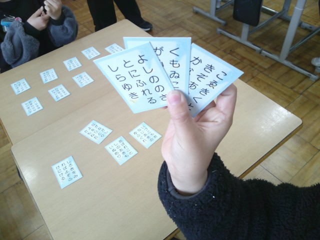 4年生の学活では、百人一首を行いました。