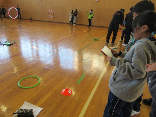 4~6年生の総合では、ドローンプログラミング体験を行いました。