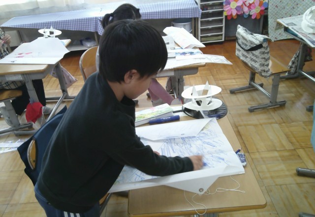 最後には、凧揚げ用の凧を作りました。完成が楽しみです。