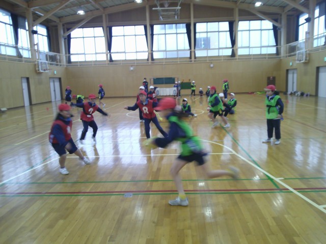 作戦を立て直し、それぞれのグループでパスの工夫をして楽しむことができました。