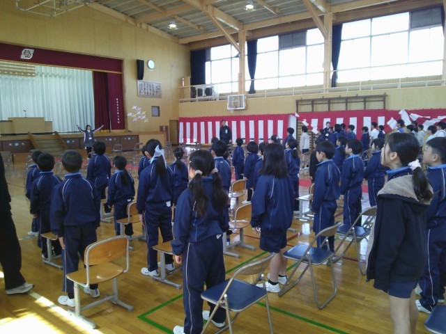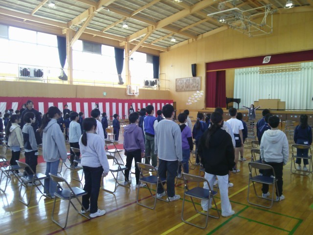 1年生から5年生の在校生で卒業式の練習を行いました。