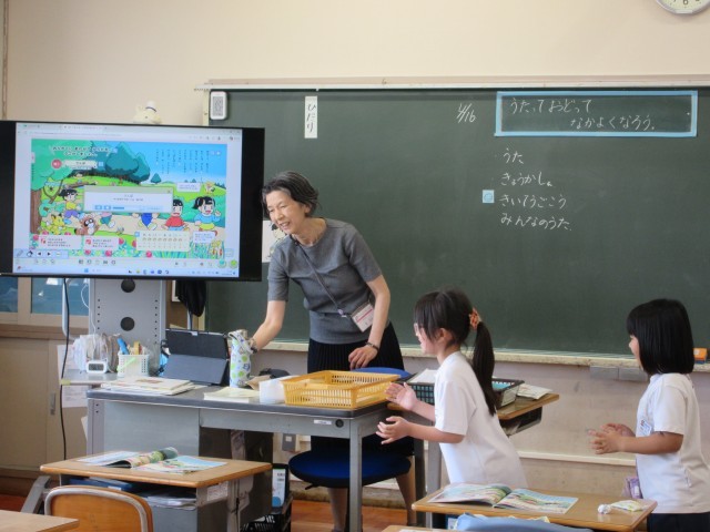 1年生の音楽では、「うたっておどってなかよくなろう」という課題で授業を行いました。