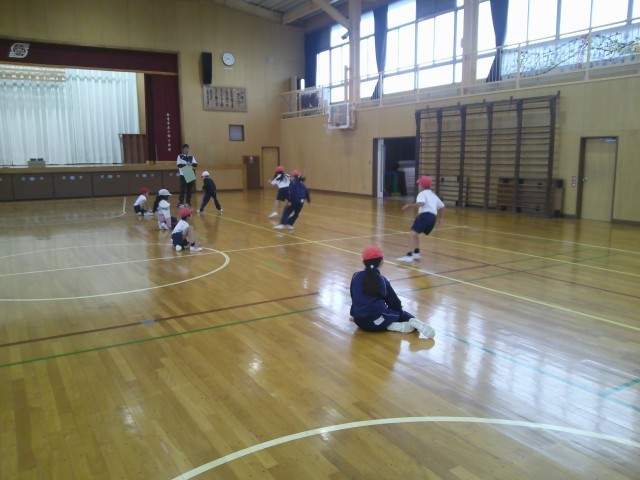雨が降っていたので体育館でできる体力テストの種目を行いました。