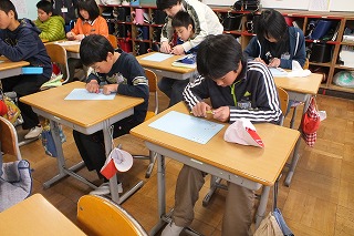 今日は天気が悪く,昼休みも外で遊べませんでした。そこで,カッターで鉛筆を削る練習を,みんなで行いました。上手に削れる子,初めてカッターで削る子,刃の反対側で「削れないなあ」と言いながらがんばっている子。楽しい昼休みでした。また,機会があればやる予定です。