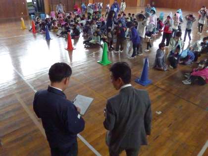 5時間目に避難訓練を行いました。今日の避難は,火事を想定して避難経路の確認をしました。子どもたちは,「おはしも」 おさない 走らない しゃべらない 戻らない のルールをしっかり守り,体育館に静かに素早く避難することができました。担任の先生も子どもたちの安全確認を行い,素早く報告することができました。