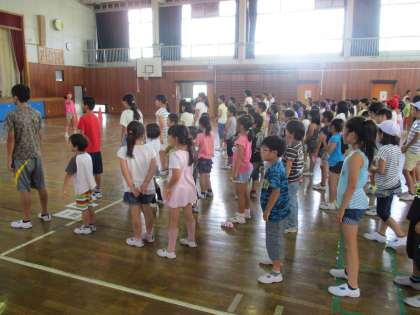 児童集会 公開日 2016/07/15 更新日 2016/07/15 2年生 今日の昼休みに,児童集会がありました。縦割り班で歌を歌ったり,ボール送りリレーをしたりしました。他の学年の友達と,楽しく過ごすことができました。