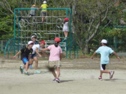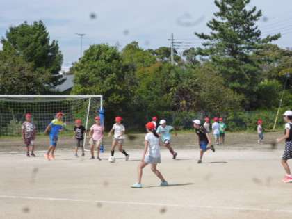 ロング昼休みは,クラス全員でサッカーをしました。みんな,夢中になってボールを蹴っていました。