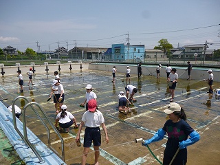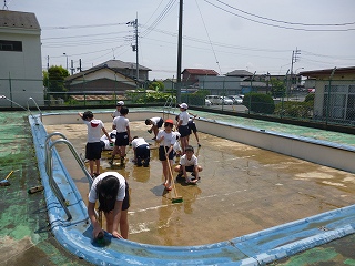 5,6年生でプールの清掃をしました。体操服が汚れるのもかまわずに,一生懸命取り組んでくれました。