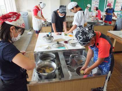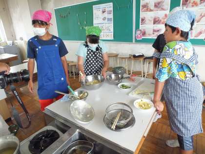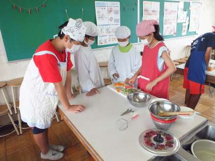ポテトサラダ作り2 公開日 2017/07/18 更新日 2017/07/18 6年生 2校時に素敵な発表をみせてくれた1年生にも,お礼の気持ちをこめて食べてもらいました。「おいしい」と喜んでもらえたようです。