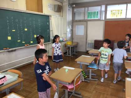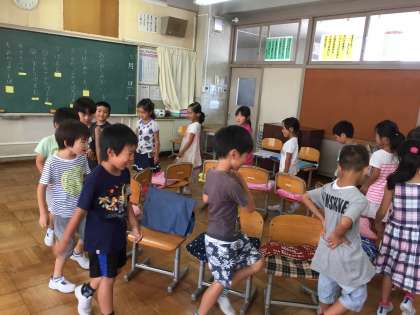 1年 お楽しみ会 公開日 2017/07/20 更新日 2017/07/20 1年生 1学期最後の日に、お楽しみ会をしました。元気に「歌えバンバン」を歌った後は、宝探しゲームと椅子取りゲームをして盛り上がりました。一人一役で、司会や始めの言葉などもしました。