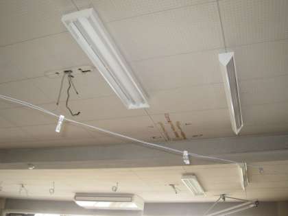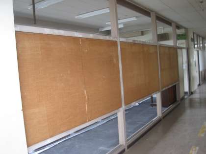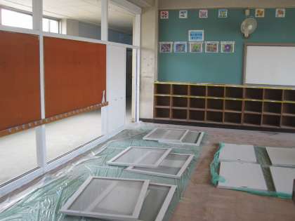 各教室の蛍光灯はLEDに,また,壁や廊下もきれいになる予定で,壁は塗り替えられ,廊下ははがされた状態になっています。