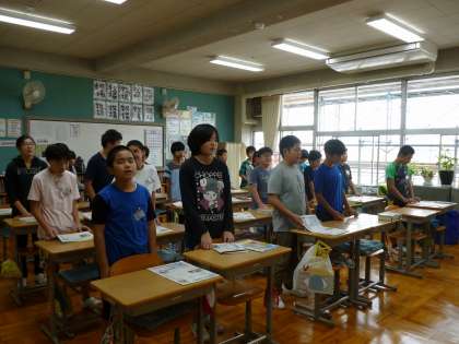 2学期スタート 公開日 2017/09/01 更新日 2017/09/01 6年生 2学期が始まりました。現在,校舎改修中のため,本日の始業式は放送で行いました。2,4,6年生が2学期の抱負を述べたあと,教室で校歌を斉唱し,校長先生の式辞を聞きました。