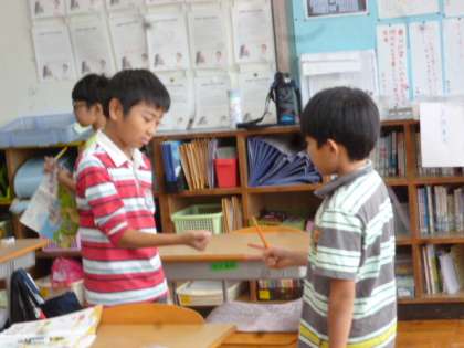 2学期がスタート 公開日 2017/09/01 更新日 2017/09/01 5年生 夏休みの思い出を嬉しそうな表情で話してくれました。今日は,外国語活動の授業がありました。夏休み明けでしたが,みんな,集中して学習に取り組んでいました。