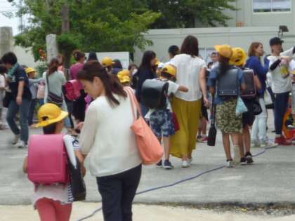 5時間目に,小中合同引き渡し訓練が行われました。「お は し も」を守りながら,避難することができました。