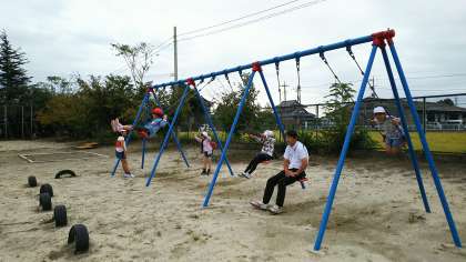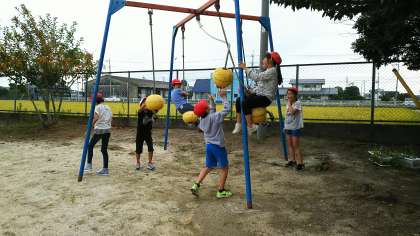 工事の関係で校庭が狭くなっています。しかし、子どもたちは昼休みに元気に校庭で遊んでいます。