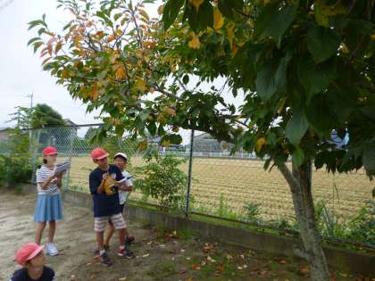 今日は理科の時間に,校庭の生き物の観察をしました。春から観察している桜やツルレイシの変化を見とってまとめました。ツルレイシの実がなっていて,世話をがんばった子ども達が感激していました。