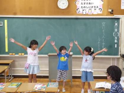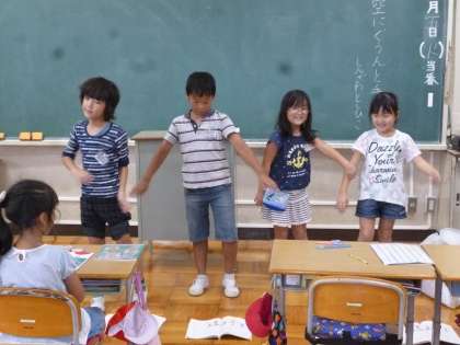 詩の音読発表会をしました。身ぶり手ぶりをつけてグループごとに工夫をしてすばらしい発表ができました。