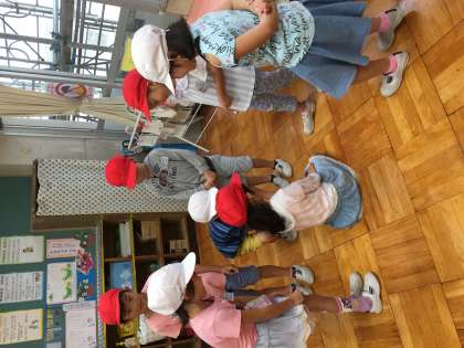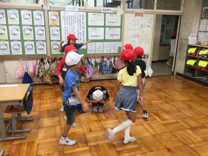 昼休みは、みんなで遊ぶ日でした。雨だったので、室内で「後ろの正面だあれ」をして遊びました。みんなとても楽しそうでした。