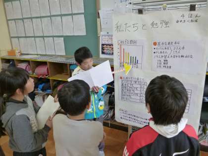 みんなのニュース 4年生 公開日 2018/02/14 更新日 2018/02/14 4年生 今日の国語では,みんなの生活で気になることをアンケートしてまとめ,発表しました。わかったことを分かりやすく伝えられるよう,工夫を凝らして話すことができました。