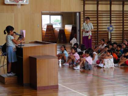 連日の猛暑のため、朝一番に終業式を実施しました。