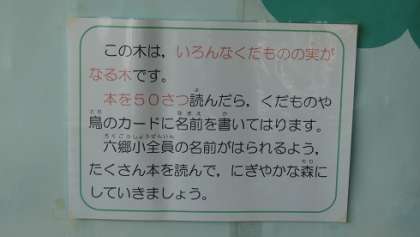 読書の森 公開日 2021/06/03 更新日 2021/06/03 校長室だより 校舎の西側階段の踊り場に、「読書の森」の掲示物があります。読書50冊を達成した児童の名前が掲示されます。5月までに3名の名前がはられました。これからたくさん増えていくことに期待しています。雨の日は、読書をして過ごせるようにしましょう。
