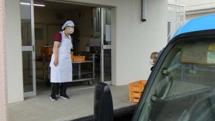 みなさんが勉強している間に届きます。運転手さんは、給食の時間に間に合うように、たくさんの学校に配達してくれています。学校では、用務士さんが牛乳を受け取ってくれています。