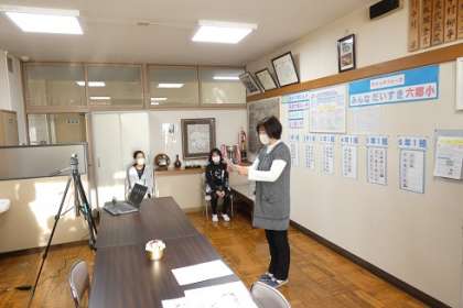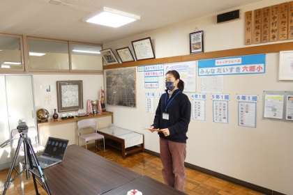 感染予防のため、校長室からリモート中継を各教室で見る形式で行いました。