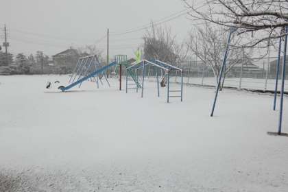 閉庁していた六郷小も本日から再開しました。 この雪で、グランドも雪化粧になりました。