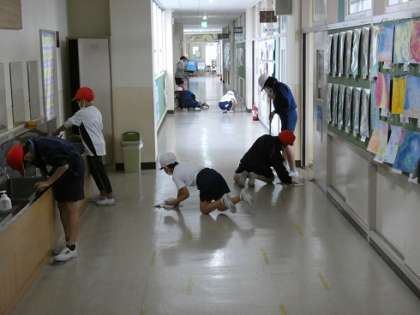 今日から縦割り班清掃開始 公開日 2022/06/07 更新日 2022/06/07 校長室だより 六郷小の特徴の縦割り班清掃が今日から始まりました。高学年児童のリードでみんなが清掃活動に取り組んでいました。