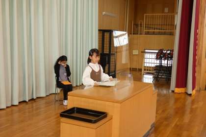 2学期が始まりました。代表児童の発表を体育館から各教室に配信しました。 素晴らしい発表でした。