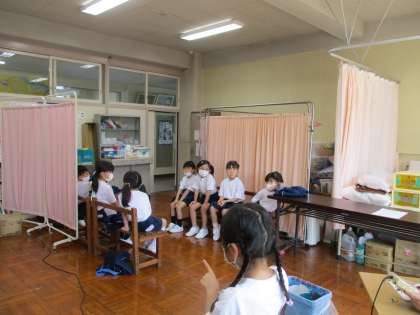 保健の先生の言うことをよく聞いて身体測定ができました。