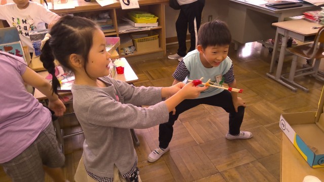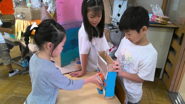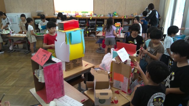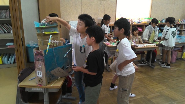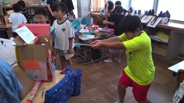 1組さんは、魚釣りゲームや射的やガチャポン等々、ダイナミックで発想豊かなおもちゃを完成させ、2組さんを大いに楽しませてくれました!