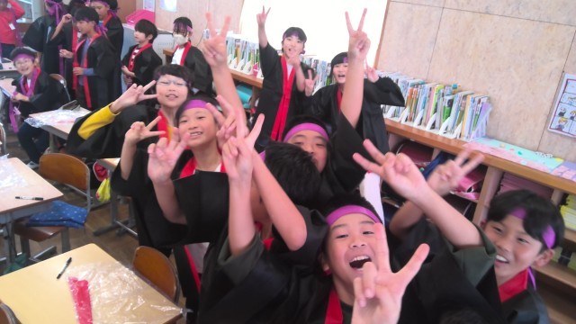 「でか~い!」と言いながらも、嬉しそうな5年生。