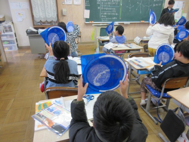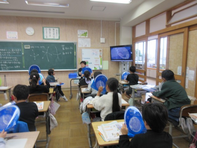 今日の理科の授業では、星座早見表の見方を学習しました。