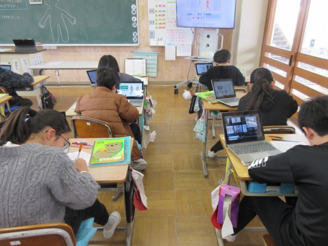 理科では、骨や筋肉のつくりについての学習をしています。今日はタブレットで調べてプリントにまとめました。筋肉や骨の様子についてじっくり見ることがあまりないので、興味津々でまとめていました。