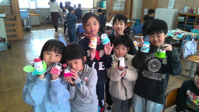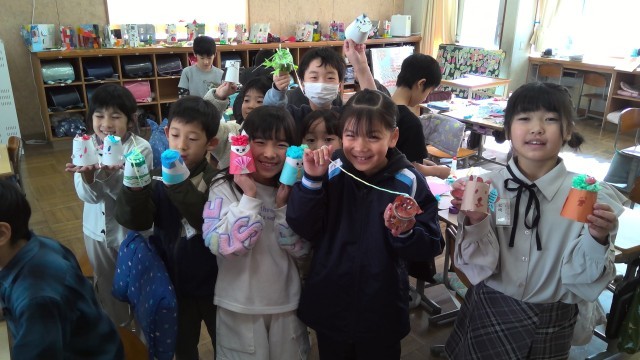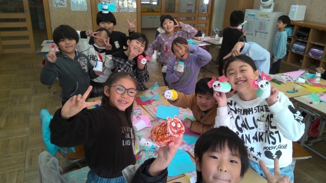 2年生 図工 ふたりはなかよし! 公開日 2025/12/16 更新日 2025/12/16 2年生 みんなが大好きな図工の時間です!なかよしなふたりは。。。「たんぽぽと綿毛」「タヌキとネズミ」「ねことうさぎ」「双子のきつね」「鬼の兄弟」等々、思い思いに想像することを楽しみながら取り組むことができました。 +5