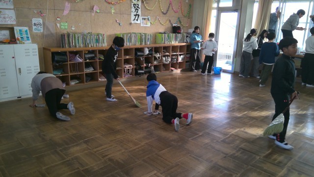 今日の6時間目に大掃除をしました。教室の床や窓などをきれいに水拭きをして、自分たちでワックスがけをしました。きれいになった教室を見て「気持ちいいな」とつぶやいていました。これで2026年も気持ちよくスタートできそうです!