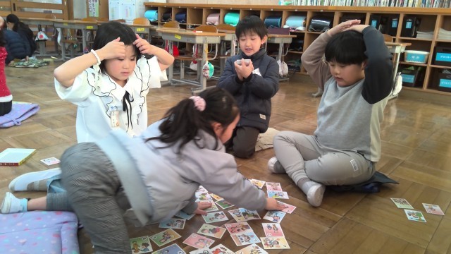 2年生 新春わくわくカルタ取り大会 公開日 2026/01/15 更新日 2026/01/15 2年生 国語科でかるたの学習をしています。自分たちでかるた作りをする前に、今日はみんなでかるた作りのコツを考えながら、みんなでかるた取りを楽しみました。 +7