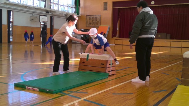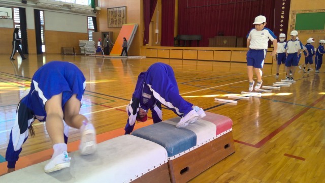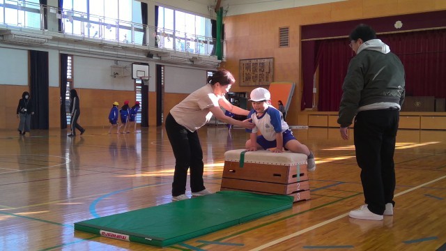 今日は、地域人材活用ボランティア派遣事業の一環として、NPOとりで西部ふれあいクラブの方々に来ていただき、思う存分体を動かしながら、器械運動の楽しさを学ぶことができました。とても寒い朝でしたが、子どもたちは汗をかきながら、40分間全力で取り組むことができました。「楽しかった!」「もっとやりたい!」「初めて跳び箱がとべたよ!」「毎日やりたい!」「次は絶対一番上まで登りたい!」と子どもたちも目をきらきらさせながら嬉しそうに話してくれました。