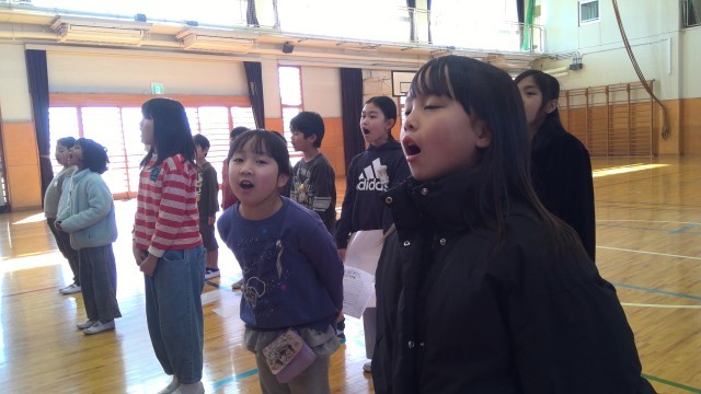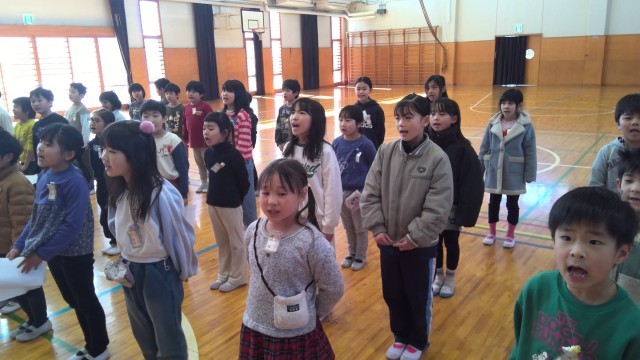 登下校で優しくしてもらったこと、一緒にそうじを手伝ってもらったこと、学童で楽しく遊んでもらったこと、運動会でがんばる6年生のかっこいい姿に感動したこと等々、たくさんの「ありがとう」の気持ちを、心を込めて歌と言葉にのせて6年生に届けます。