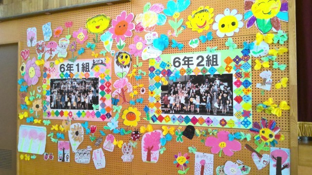みんなで一生懸命に作った会場の飾り付けも完成しました。体育館の壁面からも「6年生への感謝の気持ち」と「卒業おめでとうの気持ち」を届けます!