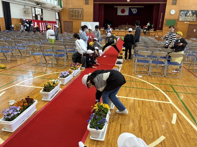 また、明日は入学式です。みんなで会場をつくりました。