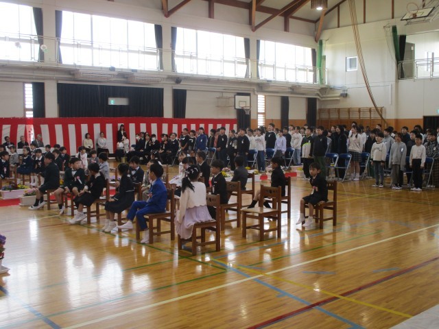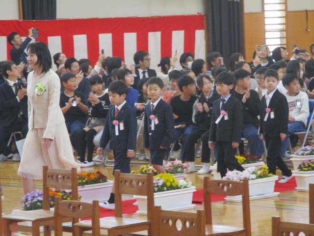 新入生36名が、5、6年生に迎えられながら入学しました。