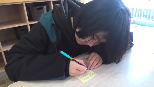 心を込めて友達へのGOOD JOBカードを書いてくれたり、